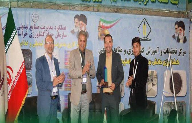 به گزارش روابط عمومی و امور بین‌الملل پارک علم و فناوری خراسان، 2 شرکت فناور عضو دهکده فناوری و نوآوری کشاورزی خراسان رضوی در رویداد استارتاپ دمو موفق به کسب مقام برگزیده شدند.در حاشیه نمایشگاه تخصصی صنایع غذایی ماشین آلات و تجهیزات وابسته در محل نمایشگاه بین‌المللی مشهد با اهدای تندیس، لوح سپاس و هدیه نقدی از طرف سازمان صنایع کوچک و شهرک‌های صنعتی ایران دبیر اجرایی رویداد استارتاپ دمو و معاون صنایع کوچک شرکت شهرک‌های صنعتی خراسان رضوی، از   2 واحد فناور "تاو زعفران جام" به عنوان برگزیده اول و" آیسان صنعت رسام گستر" به عنوان برگزیده سوم ، در رویداد استارتاپ دمو تقدیر شد .سید حسین حسینی مدیر عامل شرکت "آیسان صنعت رسام گستر" گفت: دستگاه فراوری گوشت (جدا کننده گوشت گردن طیور) برای اولین بار درکشور با ظرفیت تولید 1000 کیلو گرم در روز توسط این شرکت طراحی و ساخته شد.وی با اشاره به مزایای دستگاه جدا سازی گوشت گردن طیور افزود: کمک به امنیت غذایی و بهداشت جامعه، حل مشکل ادارات دامپزشکی و بهداشت در نظارت میدانی، جلوگیری از هدر رفتن مواد پروتئینی کشور، تولید محصول با کیفیت نسبت به فراوری‌های مشابه، کمک به بهره‌وری شرکت های فعال در حوزه تولید مواد پروتئینی (طیور) و ایجاد اشتغال پایدار از جمله مزایای دستگاه جداسازی گوشت گردن طیور می باشد.وی با اشاره به زمینه مصرف محصول تولید شده از این دستگاه تصریح کرد: مصرف خانوار، کباب کوبیده، همبرگر، سوسیس، کالباس ،ناگت مرغ و غیره مصرف محصول تولید شده از این دستگاه می باشد.