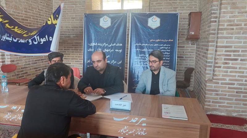 به گزارش روابط عمومی و امور بین‌الملل پارک علم و فناوری خراسان و به نقل از مرکز رشد فناوری نیشابور، در راستای ارائه خدمات و معرفی هرچه بیشتر مرکز رشد فناوری نیشابور در راستای مردمی سازی فناوری و شبکه سازی بهتر، میزخدمت مرکز رشد فناوری نیشابور در محل مسجد جامع شهرستان نیشابور برگزار گردید. در این مراسم، ابوطالب جوان معاون استاندار و فرماندار ویژه شهرستان نیشابور، ضمن حضور در میز خدمت مرکز رشد فناوری نیشابور، با اعضای ستاد این مرکز رشد به گفتگو و بررسی راهکارهای افزایش شرکت‌های دانش بنیان و فناور پرداخت .